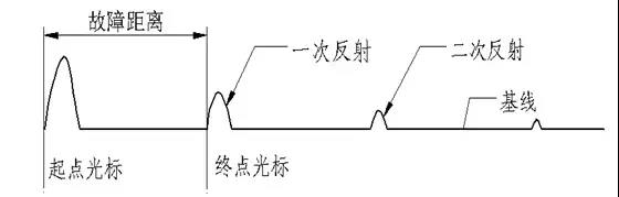 需要說明的是:當(dāng)故障距離或電纜長度較短時(shí),反射脈沖可能與基線沒有交點(diǎn),這時(shí),光標(biāo)起點(diǎn)、光標(biāo)終點(diǎn)就以波形上升或者波形下降的拐點(diǎn)來確定。