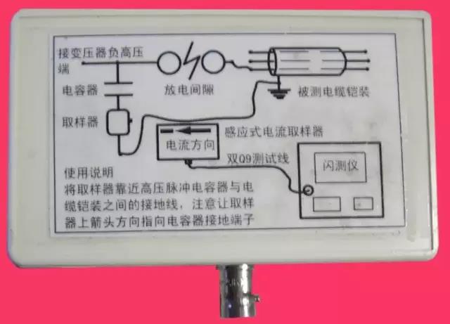 圖6是一款電纜故障閃絡(luò)測(cè)試儀說明書中,使用串接式電流取樣器時(shí),沖閃法接線圖:
