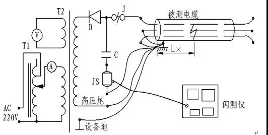 圖12 高壓閃絡(luò)法電纜接線示意圖