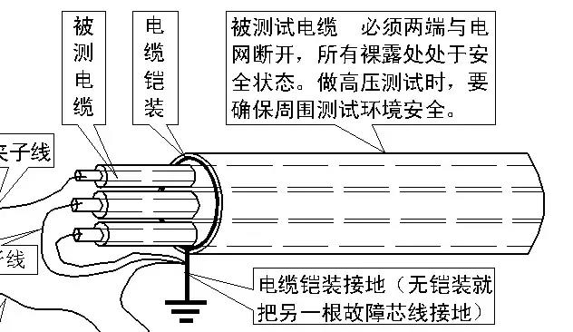 實(shí)際測(cè)試中,我們對(duì)其中一根故障相加壓,其余相不管有沒有故障,都可以直接與電纜鎧裝相連后接地,如圖12所示: