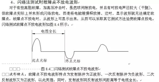電纜的高阻泄漏性故障與高阻閃絡(luò)性故障,由于故障點(diǎn)電阻較大(大于10倍的電纜特性阻抗),低壓脈沖在故障點(diǎn)沒有明顯的反射(反射脈沖幅度小于5%),故不能用低壓脈沖反射法測(cè)距。